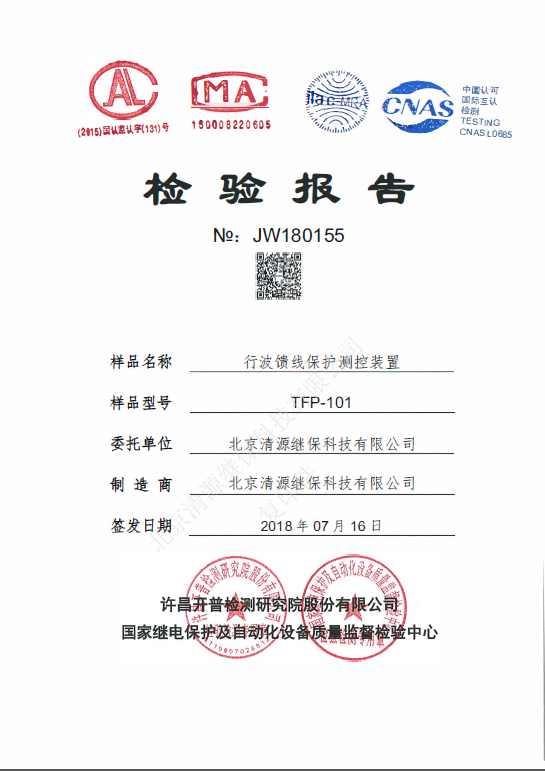 新產(chǎn)品《TFP-101行波饋線保護(hù)測控裝置》通過了“許昌開普檢測研究院股份有限公司”的國家產(chǎn)品質(zhì)量監(jiān)督檢驗(yàn)并獲取了檢測報告。
